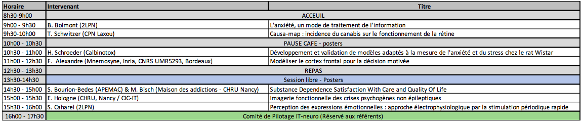 15Avr1 octobre 2019 By Laurent Bougrain 5ème séminaire du réseau IT-Neuro 5ème Séminaire du Réseau Lorrain de Recherche Interdisciplinaire et Translationnelle en Neurosciences Date : Jeudi 24 avril 2019 Lieu : Amphithéâtre de la Présidence de l’Université de Lorraine, Cours Léopold, NANCY
